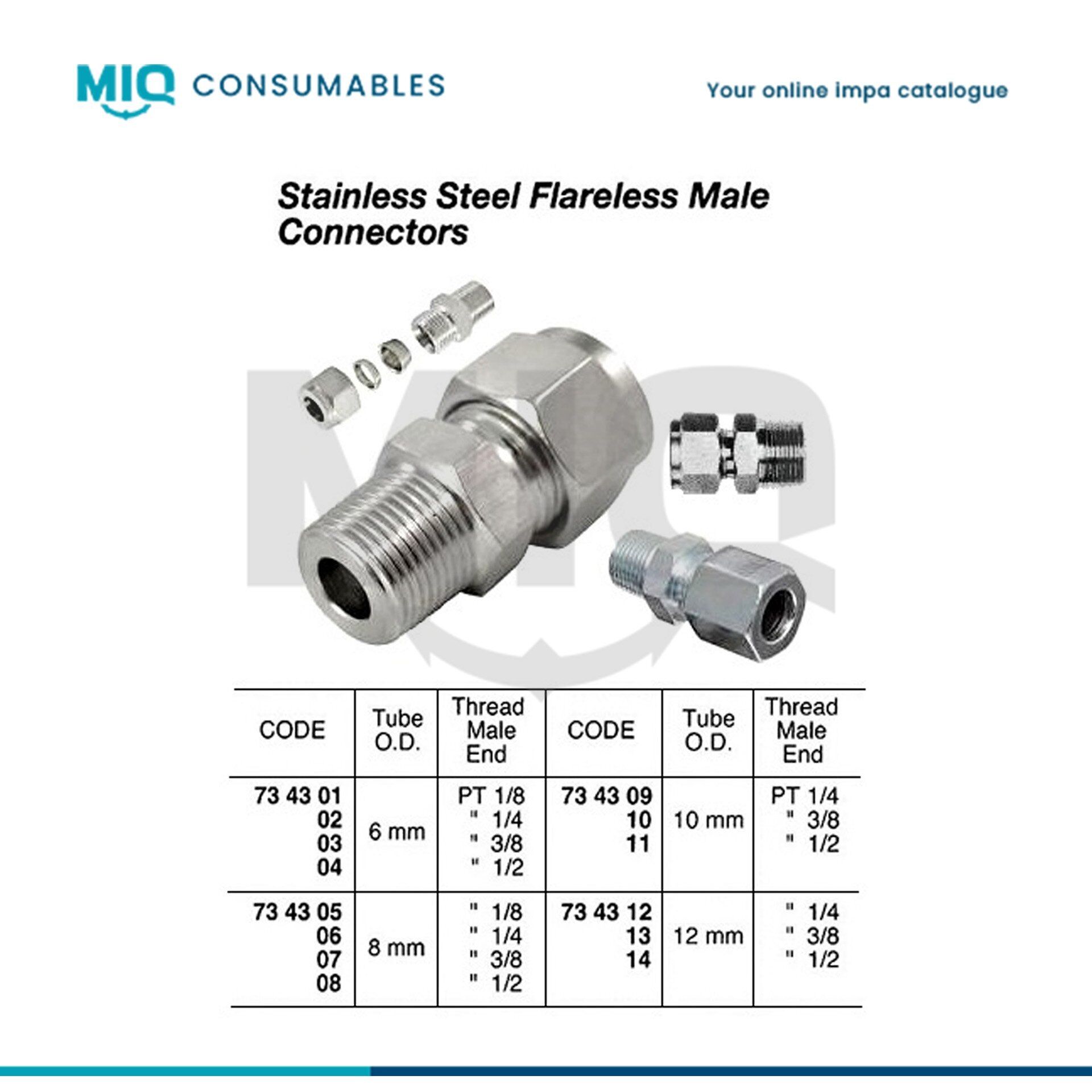 734302-CONNECTOR MALE STAINLESS STEEL, FLARELESS 6MMXPT1/4